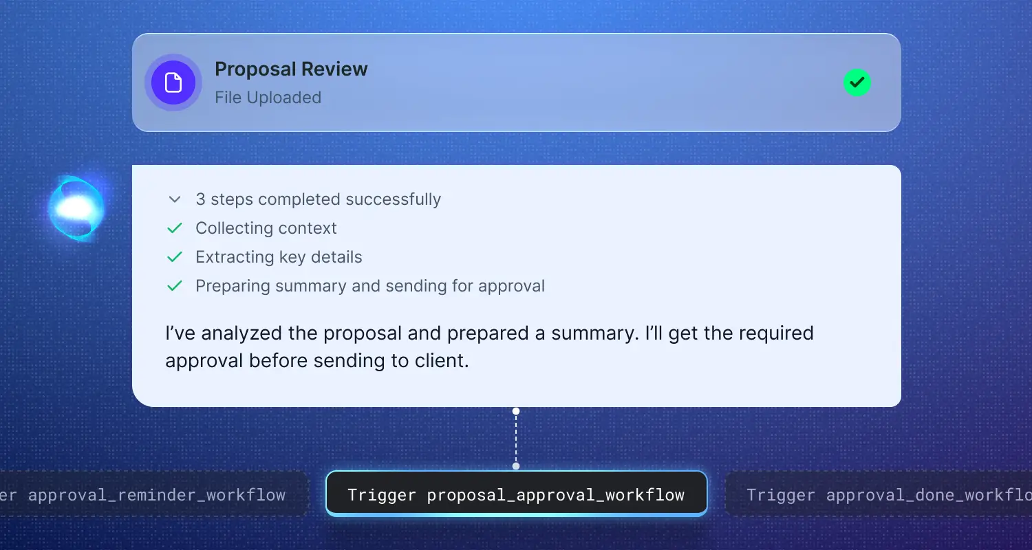 • Workflow automation: Trigger programmatic events, orchestrate multi-step logic, and handle retries/fallbacks without writing complex code.