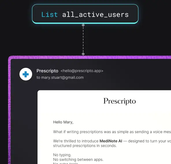 Update Lists programmatically as users interact with your product — signups, upgrades, events, and state changes.