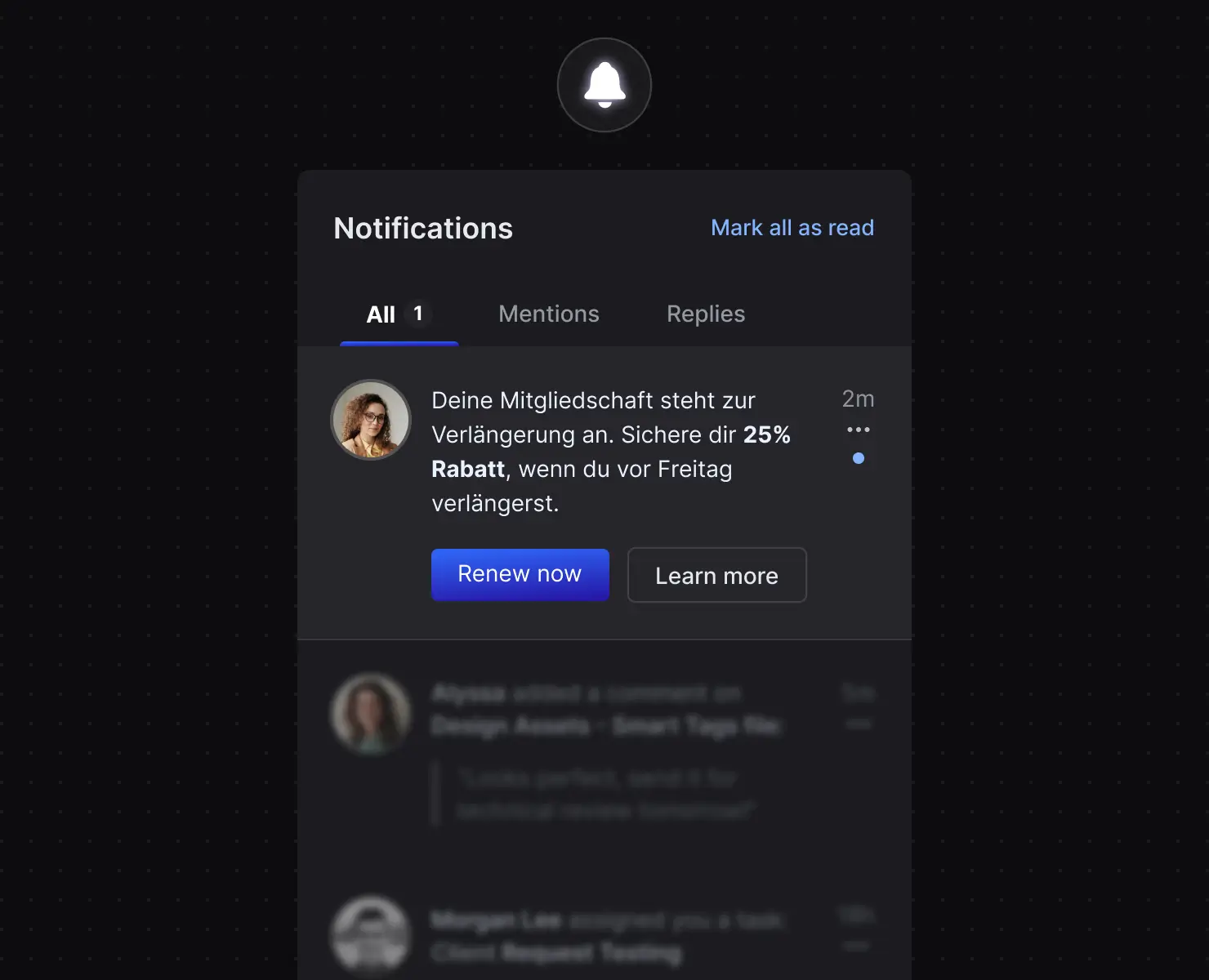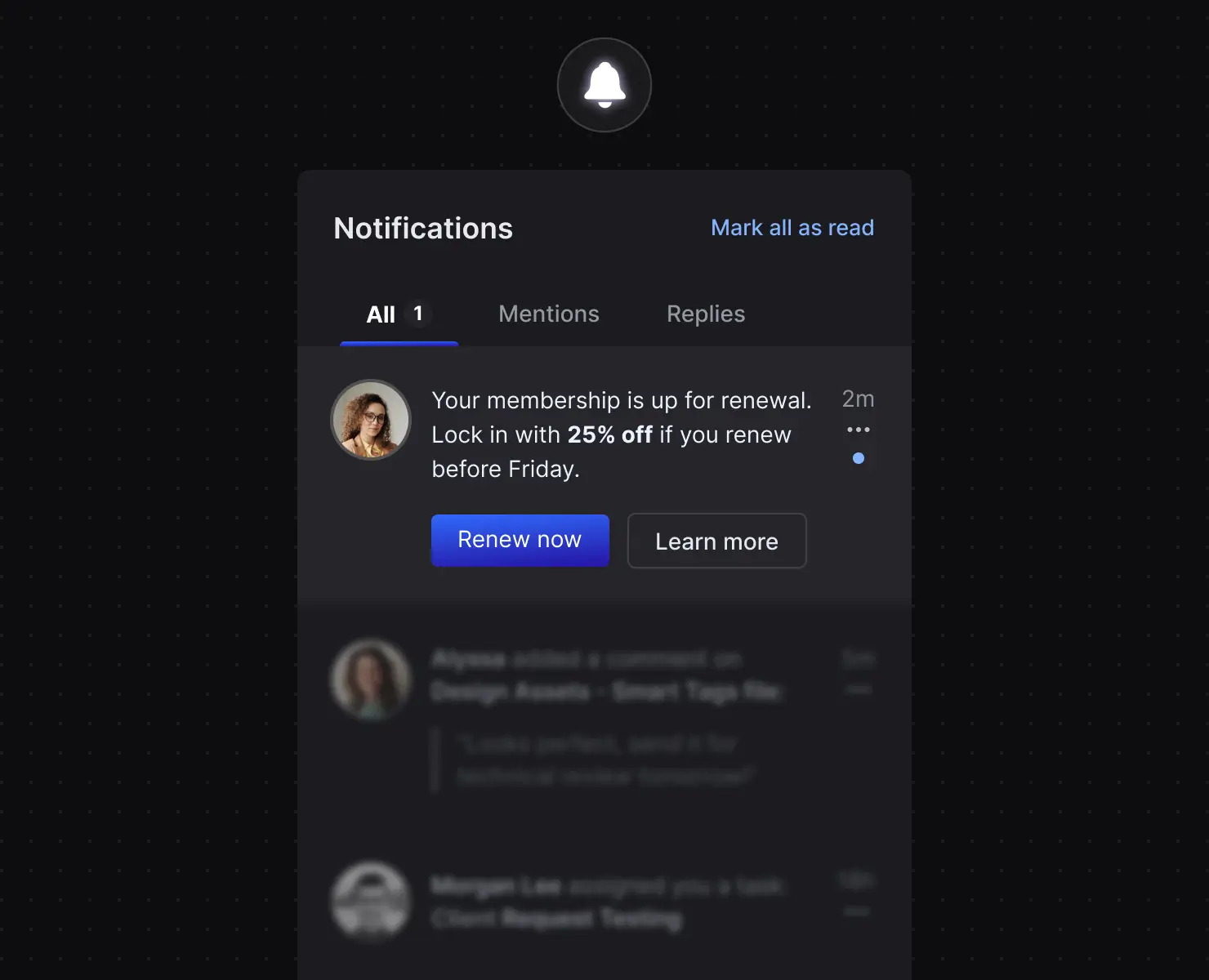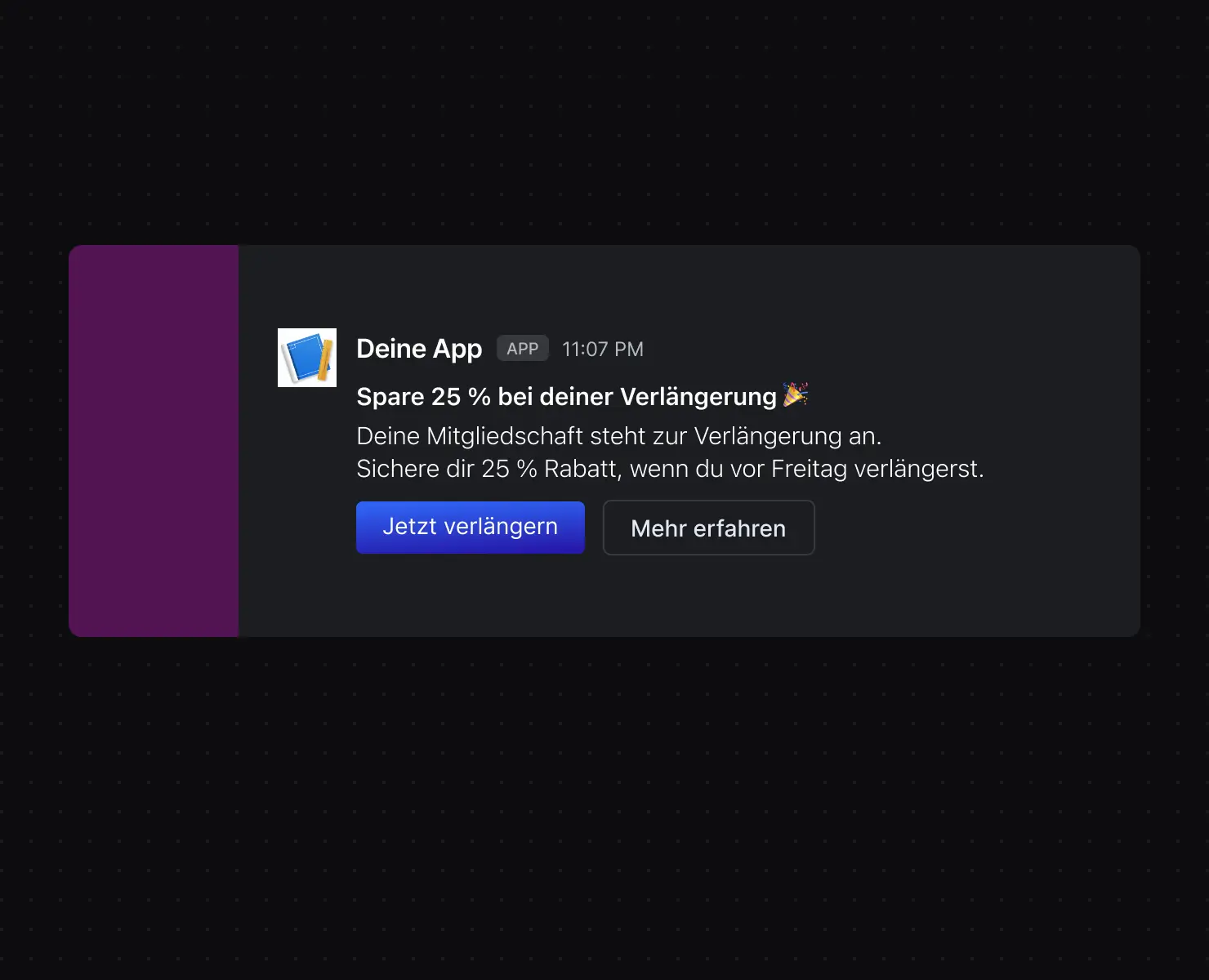 Run one-time or scheduled campaigns across email, SMS, push, chat, and in-app — from one place.