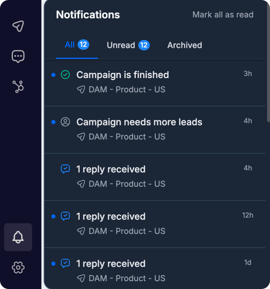 LinkedIn outreach is not a set-and-forget activity. Accounts get disconnected. Proxies fail. Campaigns stall. These are routine events which need users’ attention. But HeyReach had no notification system to flag them. No in-app alerts. No email notifications. The only channel was a standalone Slack integration, limited in scope.