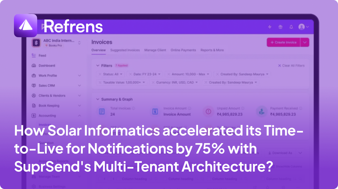“Scaling that (notification) infrastructure and maintaining its reliability would have required significant observability and substantial development time. By partnering with SuprSend, we were able to offload these concerns, allowing us to focus on user acquisition and our core product. SuprSend abstracted away the complexities of notifications and monitoring, providing a seamless solution for our notification needs.”