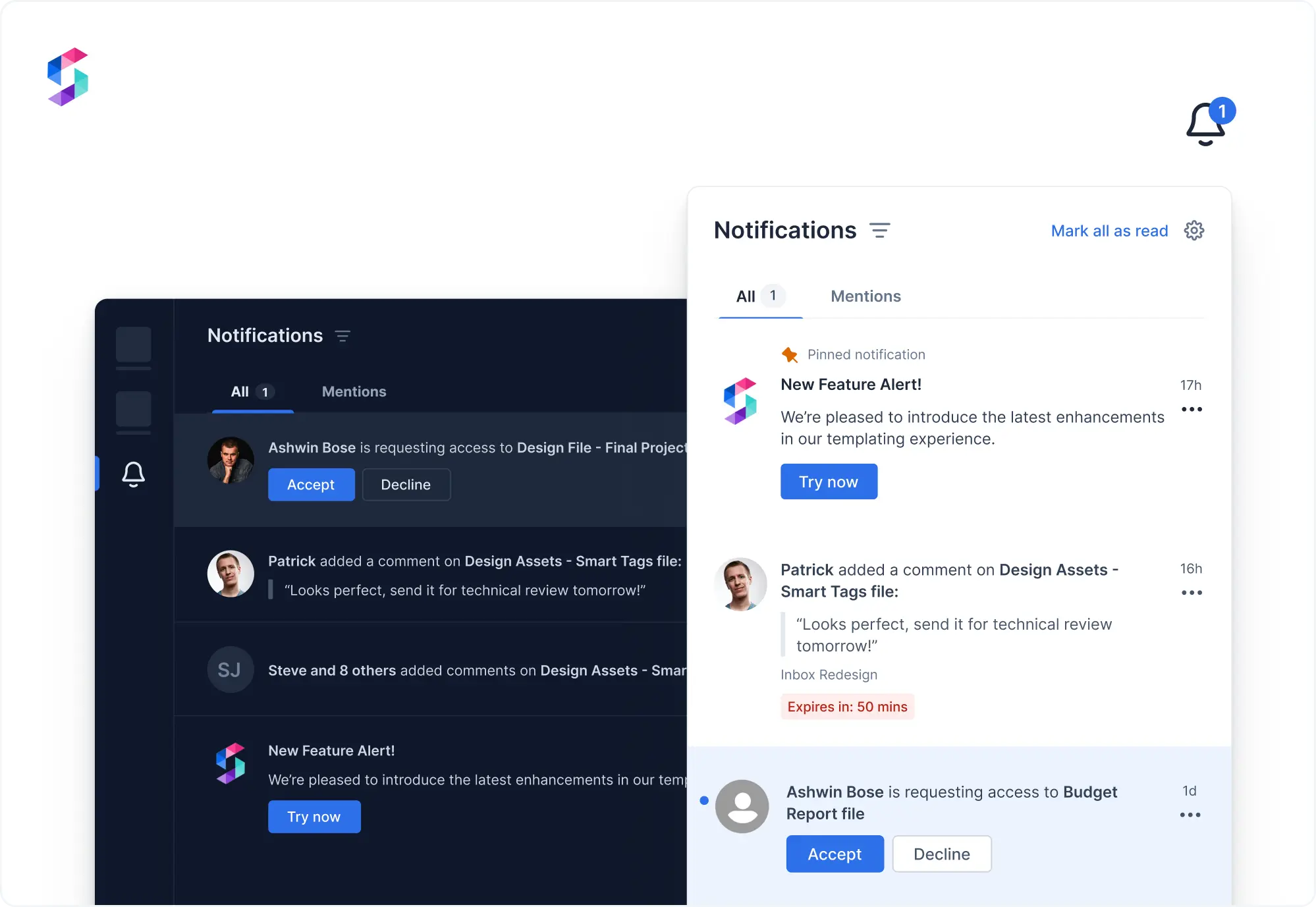 - NIPs Solution: NIPs recognize the importance of alerts within app and offer features like real-time in-app notification feed along with out-of-app channels. This ensures delivering a seamless experience, such as if the user is active in the application, they receive alerts within the application, and if offline, will get alerts on out-of-app channels like email or Slack. Besides, NIPs provide pre-built components as well as headless APIs, making it possible to deliver a native looking experience for in-app feed.