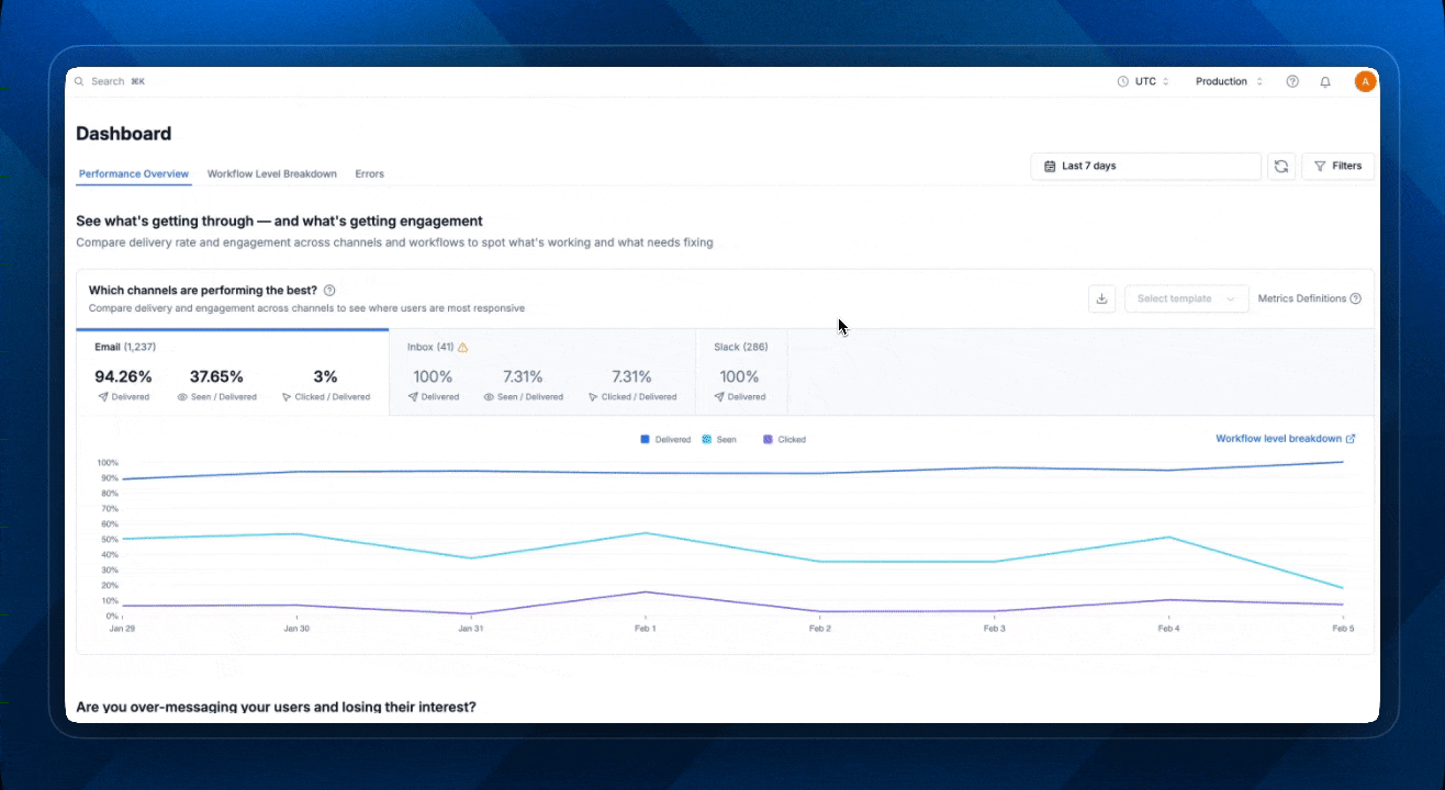 You can now branch workflows based on whether a previous notification was delivered, seen, or clicked. This lets you build intelligent escalation paths directly in the workflow editor, without writing fallback logic in code.
