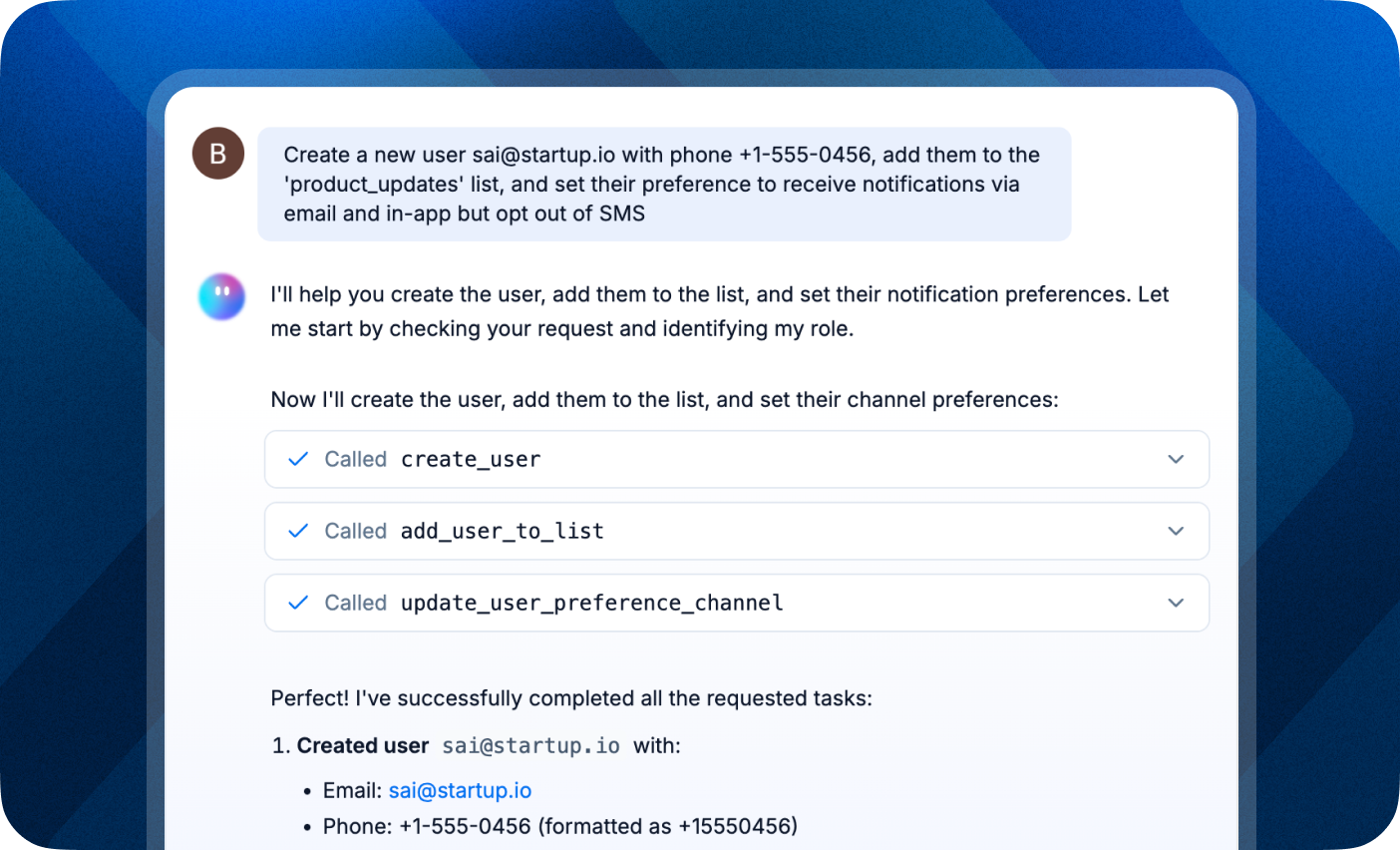 This isn't just a shortcut for clicking through the dashboard. It's a fundamentally different way to manage notifications. Instead of navigating menus and filling forms, you describe what you want and Copilot executes it. Your entire notification data layer is now accessible from the chat.