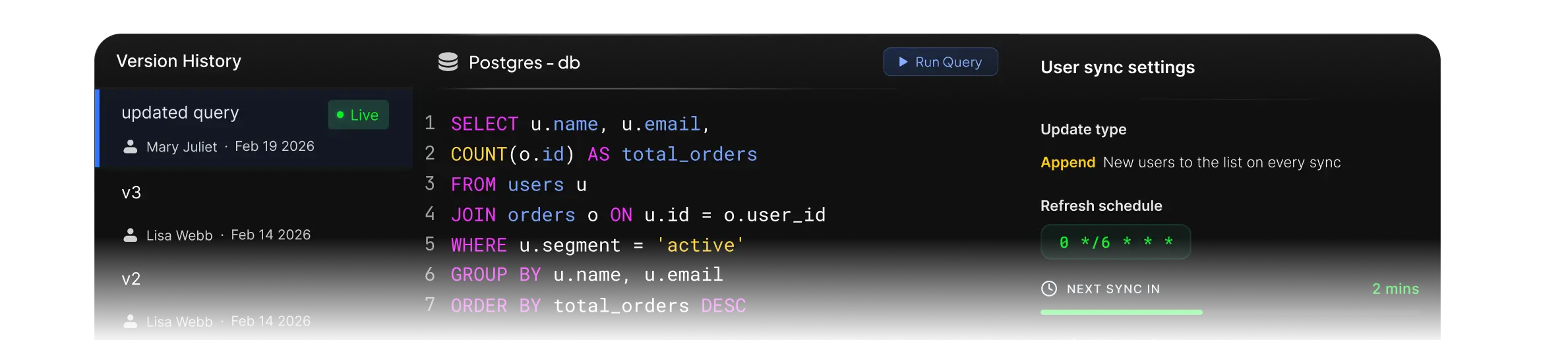 Set up cron jobs to refresh Lists. No manual exports, No pipeline to maintain.
