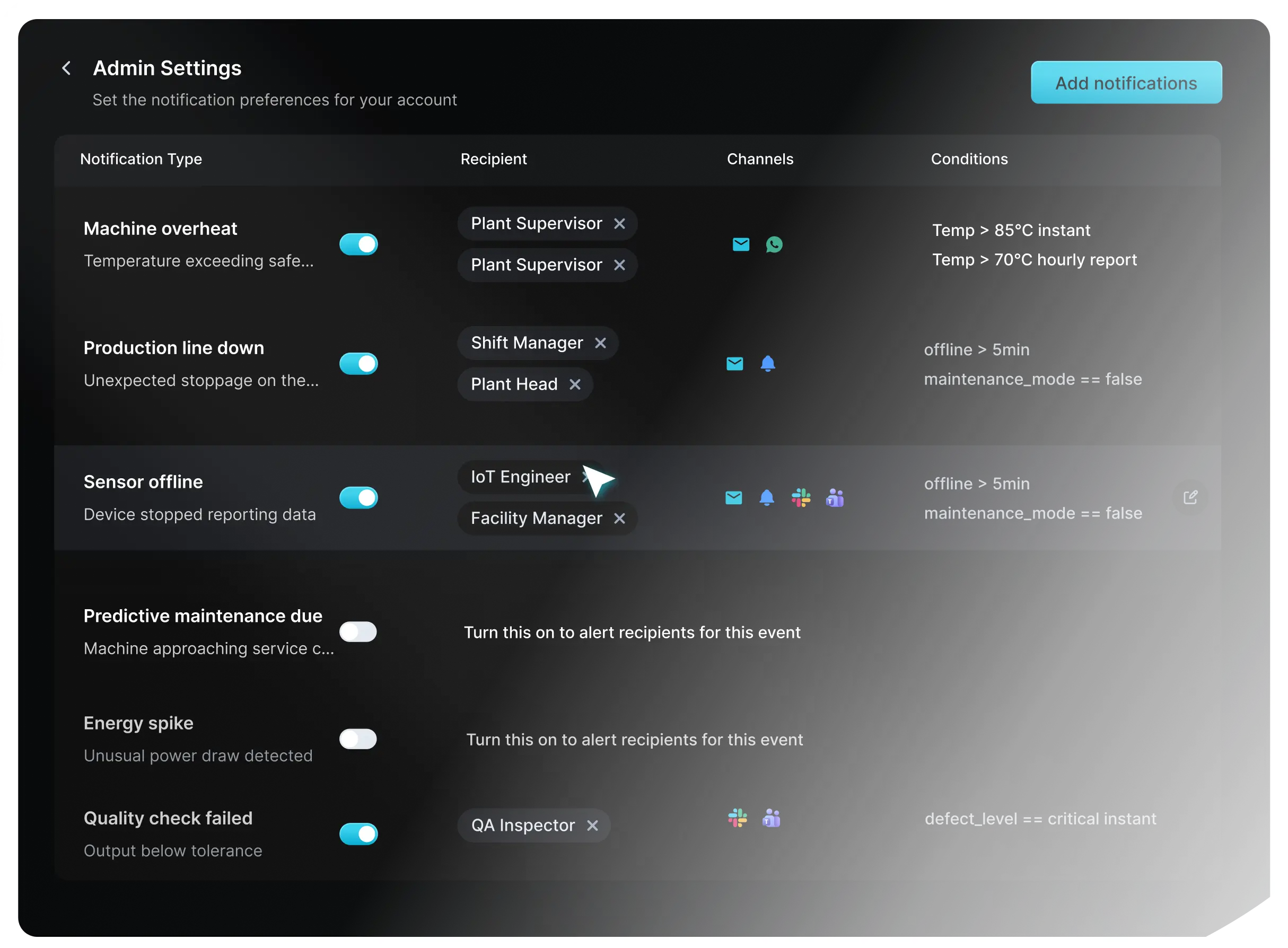• Multi-channel: Email, SMS, Push, In-App, Slack, Teams, WhatsApp